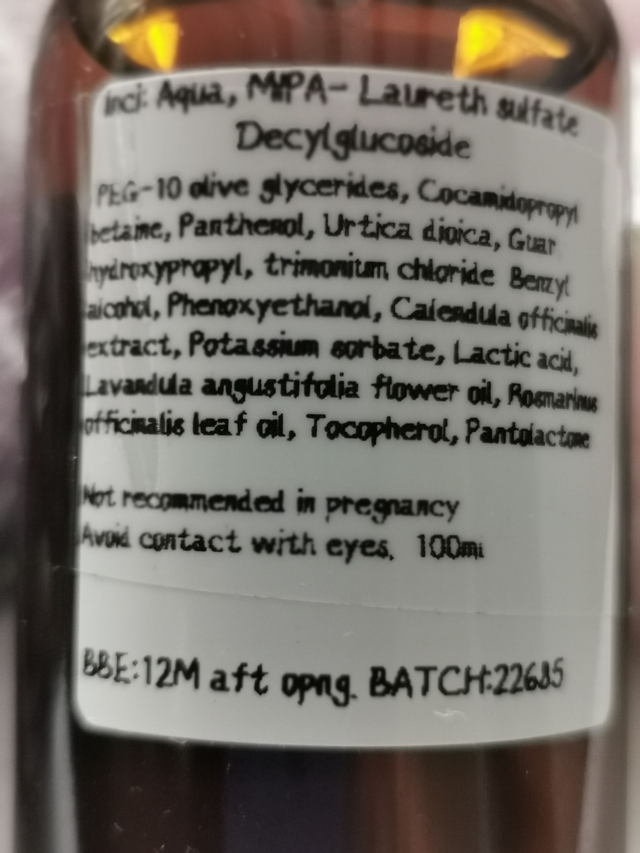 A conditioning shampoo which will also nourish the scalp. It contains Nettle and Calendula herbs and is biodegradable and SLS free. It will improve the quality of dry/lifeless hair. D Panthenol together with Organic Lavender and Rosemary are added to enhance the effects.
